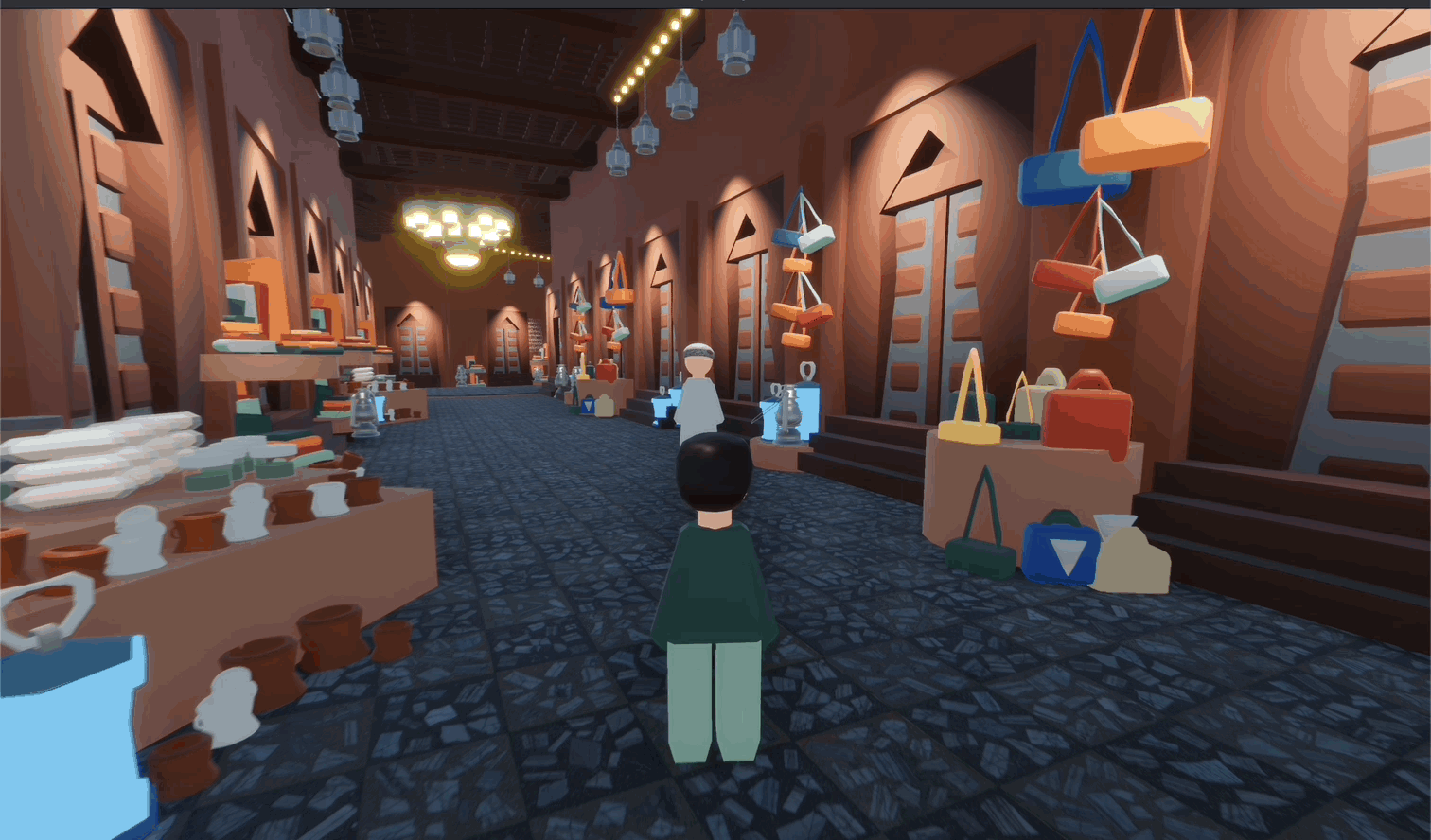 One of my biggest challenges was creating homegrown 3D models that accurately represented where I’m from. I couldn’t find pre-existing models that matched the culture or style I needed. The closest I found were generic “desert people” models for NPCs. To capture authenticity, I shifted my focus to Souq Mutrah, a 200-year-old marketplace with rich history and character.