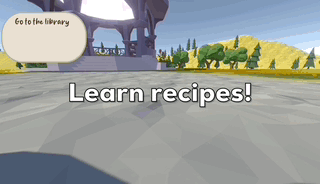 - Quest completion with 3 quests, with the subsequent only unlocking as well as UI and Assets (like cauldron) popping up if prerequisits are satsfied